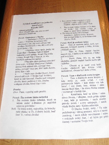Ekumenické pobožnosti dňa 25.I.2009 o 14.00 v Katolíckom kostole v Kysaku.