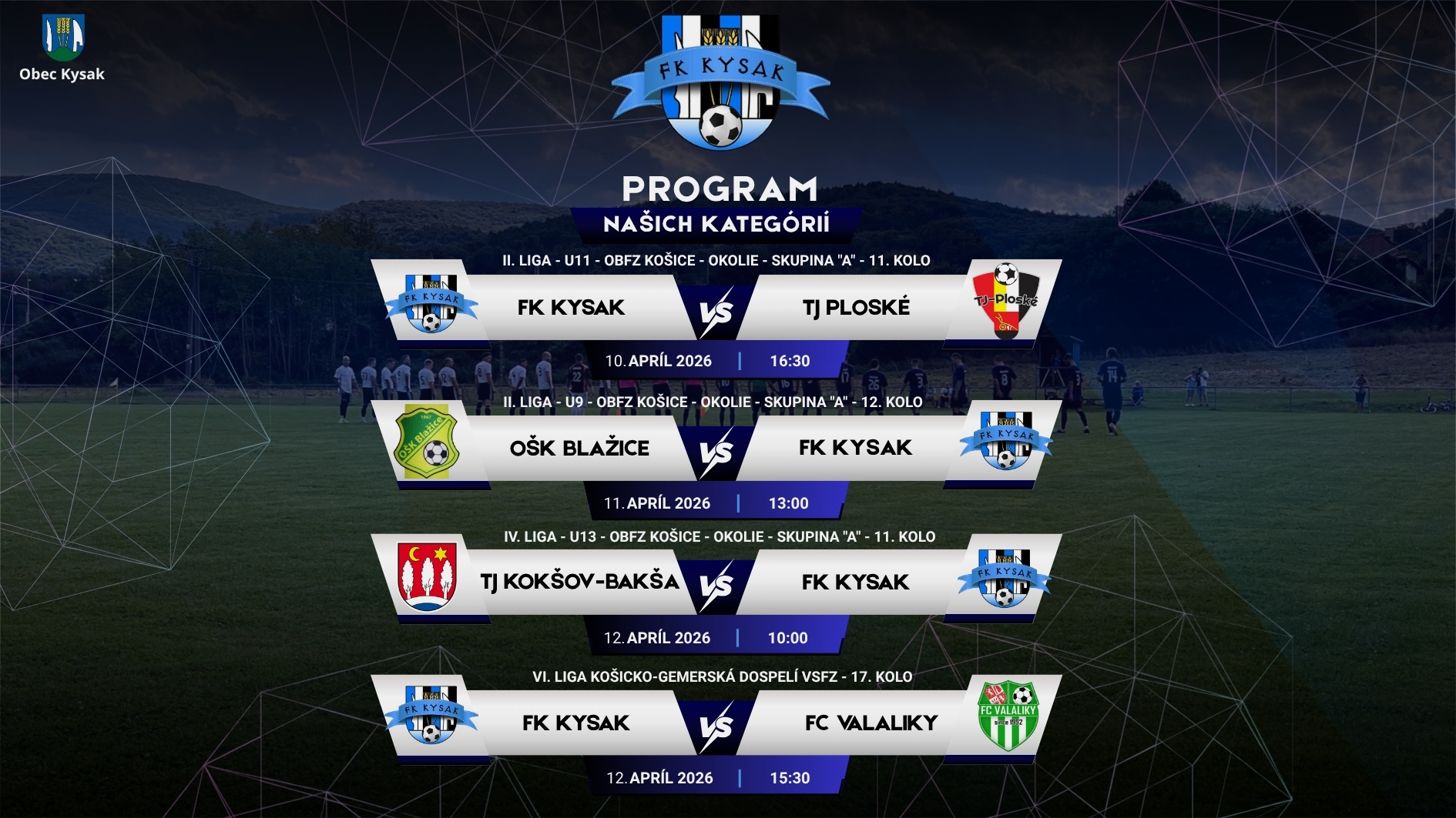 Program víkendu FK Kysak 10.-12.4.2026