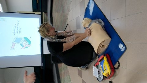 na praktickú ukážka a nácvik poskytnutia prvej pomoci pri bezvedomí, zástave dýchania a resuscitácie pri zástave srdca s použitím defibrilátora .